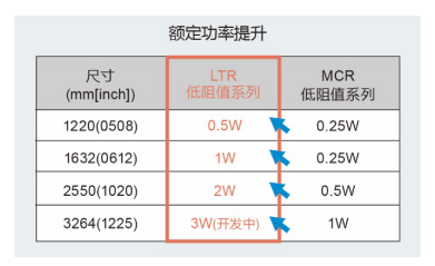 通過(guò)改善電阻體材料,不僅實(shí)現(xiàn)了2550(寬2.5×長(zhǎng)5.0×高0.55mm)的小巧尺寸,與以往產(chǎn)品MCR50低阻值系列(0.5W)相比,還實(shí)現(xiàn)了4倍的額定功率(達(dá)2W)。因此可將以往產(chǎn)品替換為小尺寸產(chǎn)品。