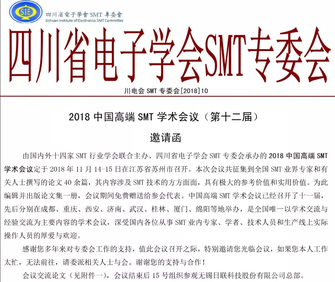 2018中國高端SMT學(xué)術(shù)會(huì)議(第十二屆)邀請(qǐng)函